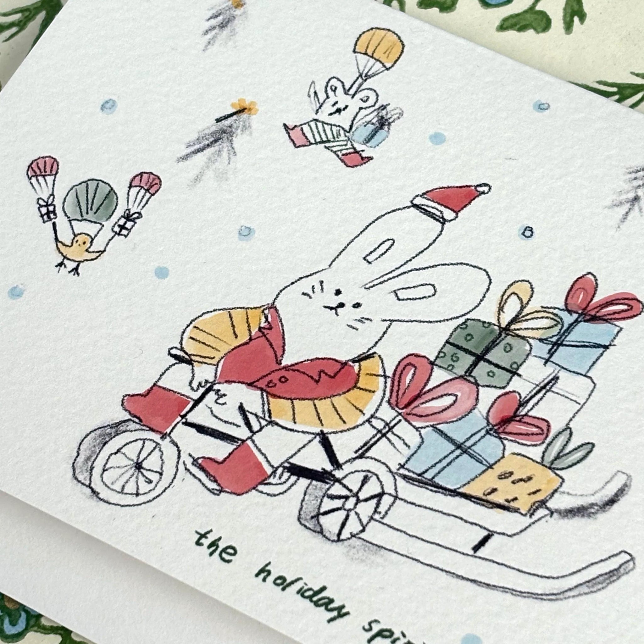 "Bunny's Merry Delivery!" Greeting Card - Blank inside for your own very special message!