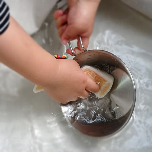 Our unique sponges start thin, but with a splash of water, transform into tough, non-scratch sponges.