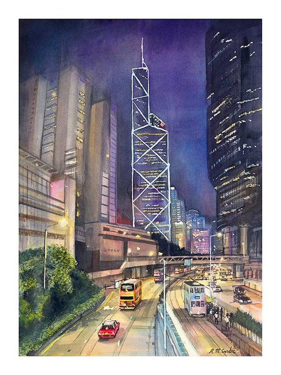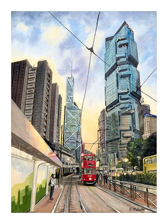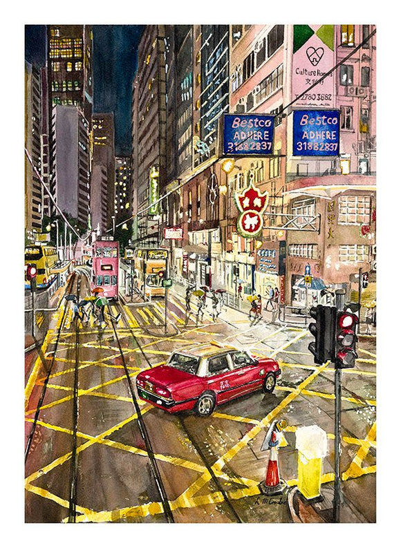 Postcard - Hong Kong Taxi & Double Pawn Signs
