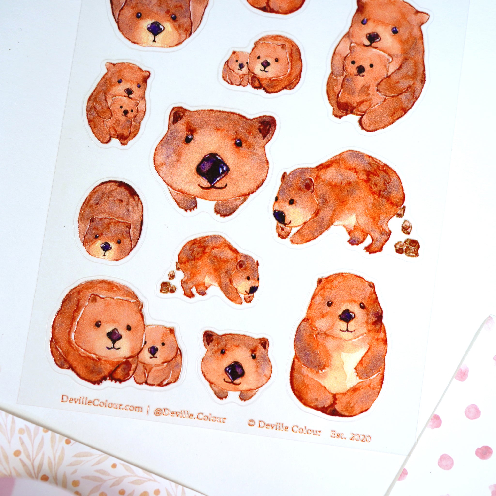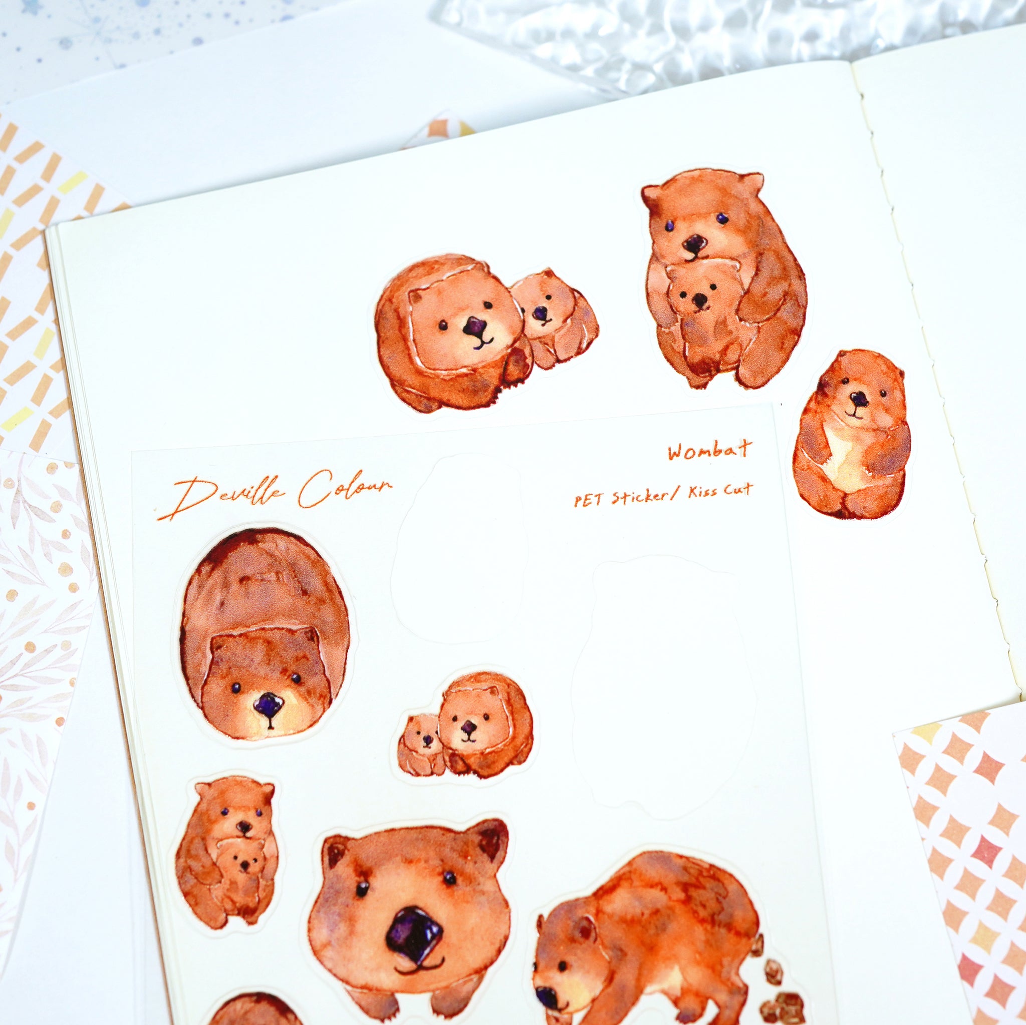 A6 PET Sticker Sheet - Wombat | A6防水PET白墨貼紙 - 袋熊